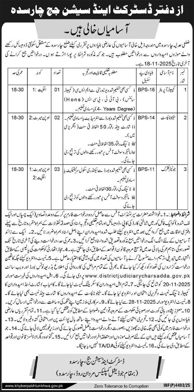 - Submit the form to the Office of District & Sessions Judge, Charsadda, before the due date.